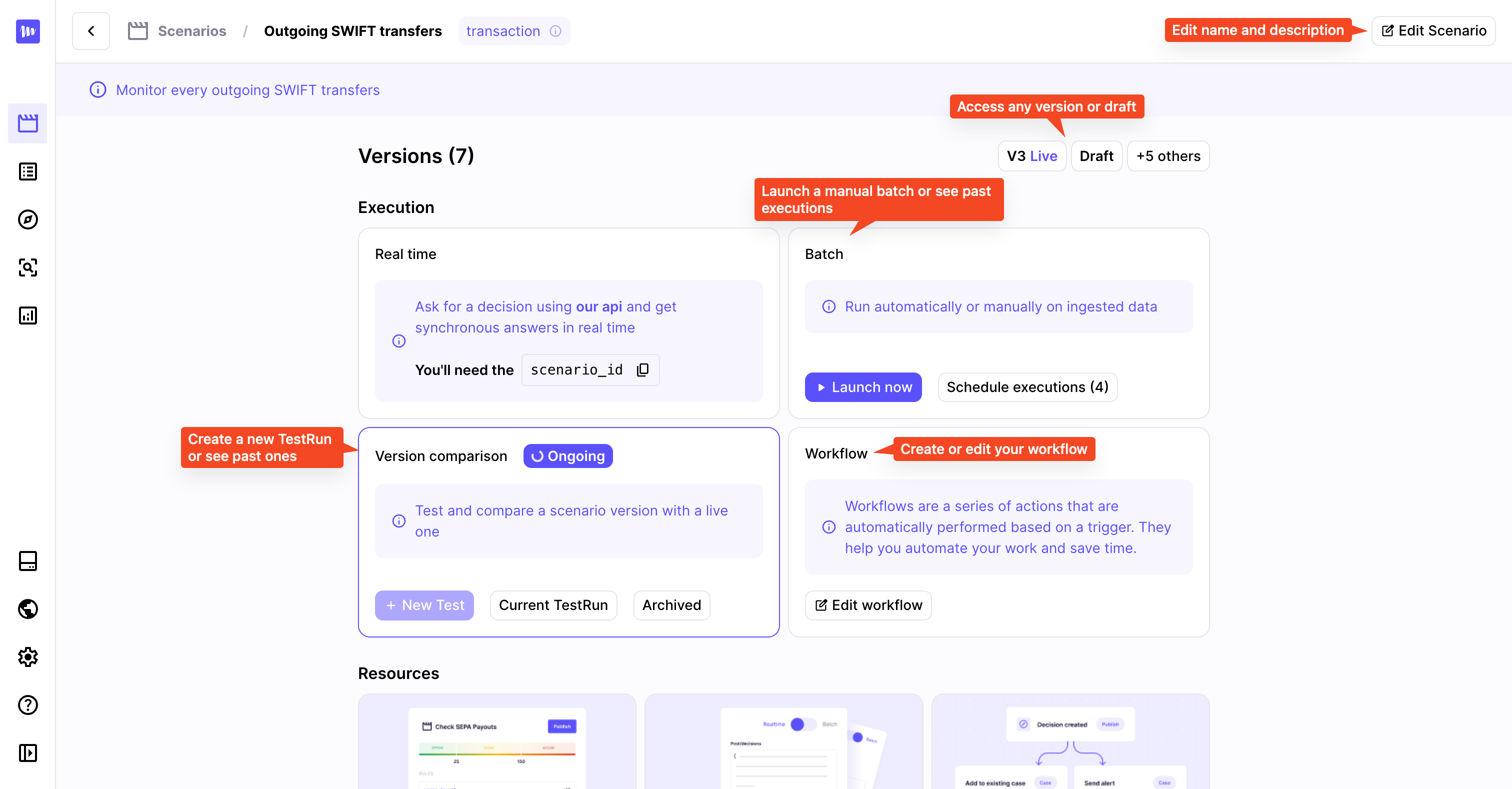 - Description: this provides users with a reminder of the scenario's purpose. The description can be updated after creation