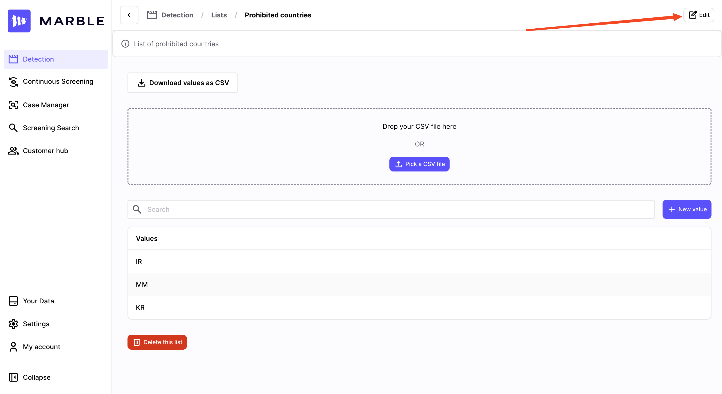 If you already have a list of values you would like to add to your list, you can add them by batch by uploading a CSV file: