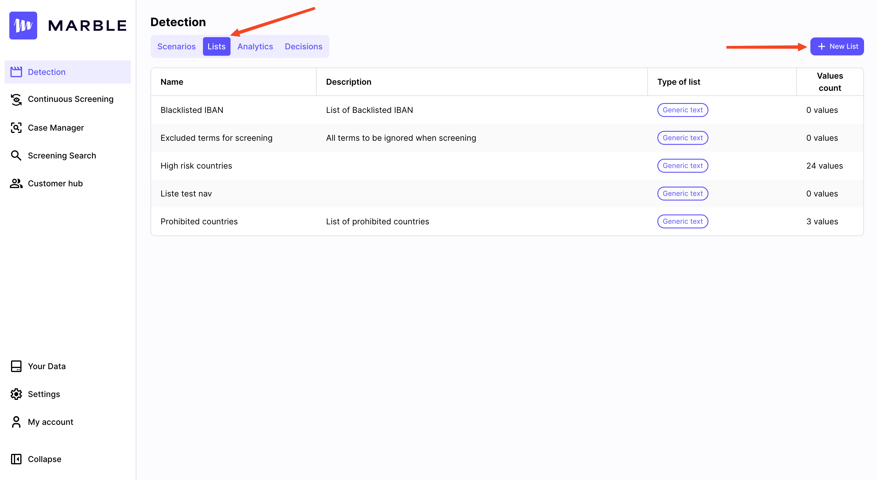 Lists serve as custom data sources necessary for creating Rule. They can be utilized in multiple contexts, and their values can be managed independently of the Scenario's lifecycle.
