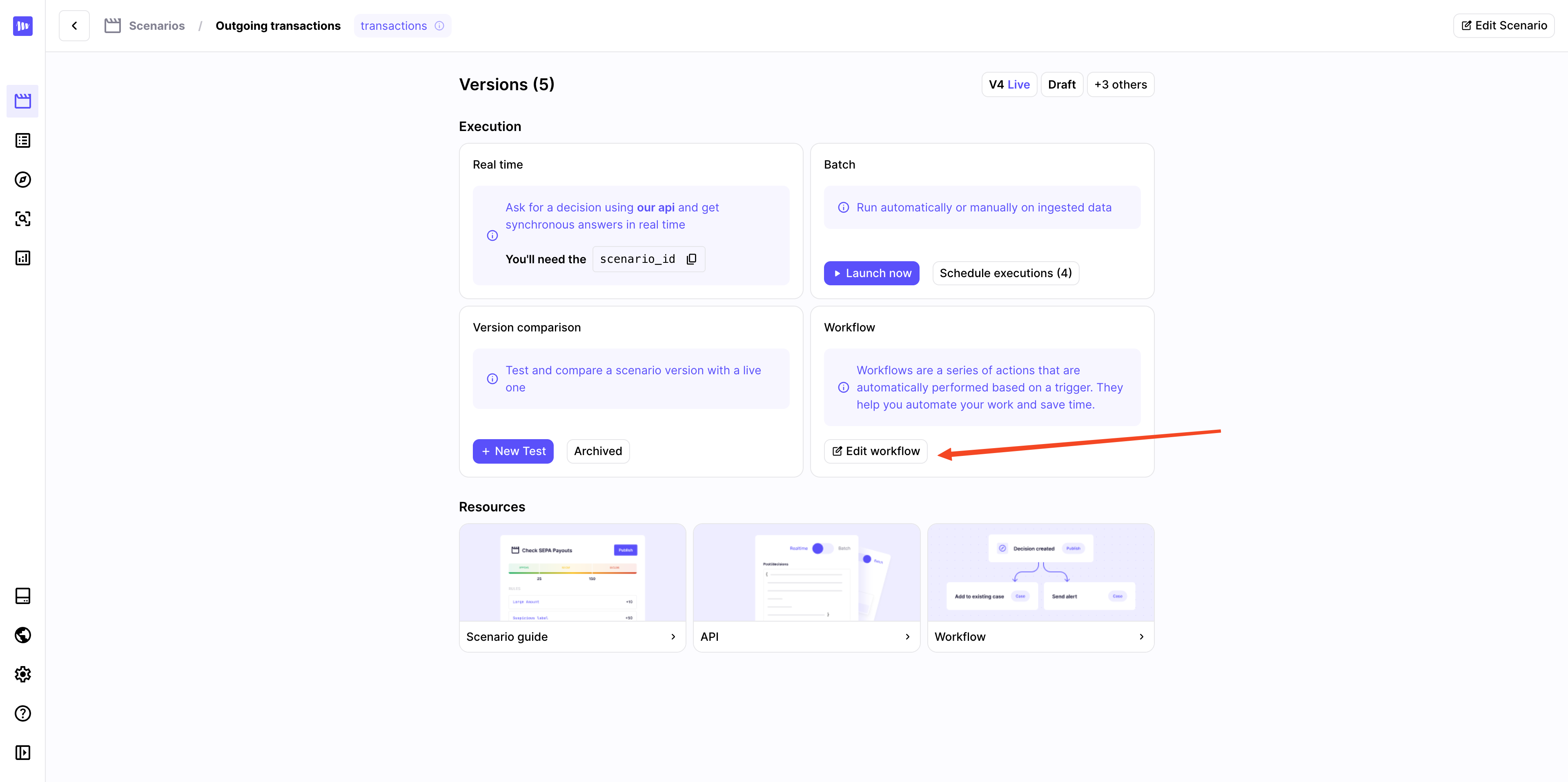 Create or edit a workflow from the Scenarios section